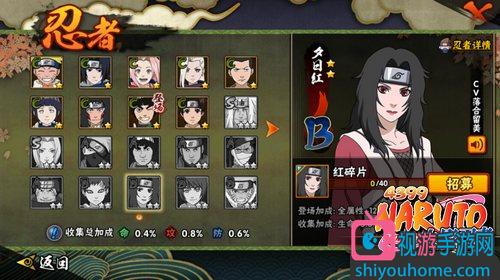 2、忍者招募,也就是传说中的十连抽,不过根据小编的经验,十连抽抽中B级忍者概率相对较低,一般都是C级忍者,建议资金充裕的玩家可以试一试。