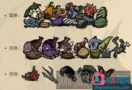 游戏错误:蔬菜杂烩并不排斥鱼类,而海难DLC中推出了不含任何肉度的鱼类食物,比如小鱼肉和水母。因此使用这些材料+蔬菜制作而成的依然会是蔬菜杂烩,即使它含有肉类。