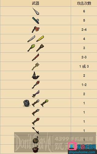 当玩家使用标准攻击力的角色时,下面是所有武器对于击杀狗鱼所需要的攻击次数。天候棒因为炮弹的随机性而没有包括在内。