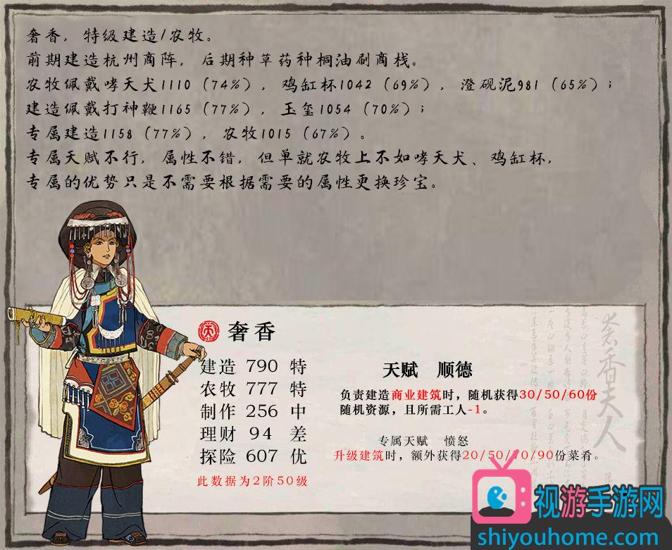 1、满级奢香和唐伯虎的属性面板很像,用在杭州探险很不错。
