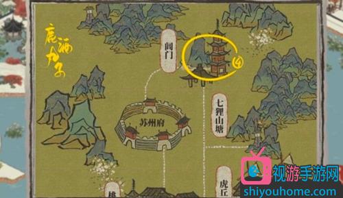 2-打开地图,来到阊门,找到下面这种圈起来的石头。