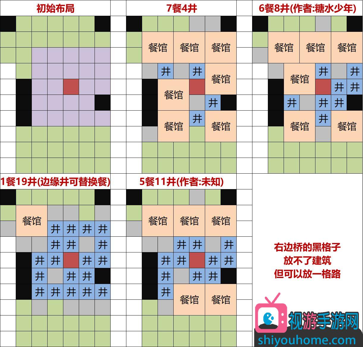 不考虑美观的话下面面这些布局是比较合理的,也能达到充足的利益。如果是为了美观的话,那么还得由玩家们自己去思考应该如何摆放。