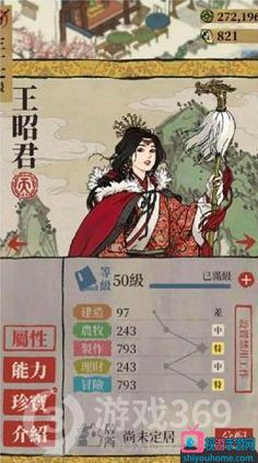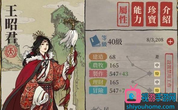 王昭君在游戏中的天赋是出去探险可以减少粮草的消耗,在冒险与制造玩法中极为出色,但是其他的就不太行了,如果你平时喜欢冒险王昭君推荐入手哦,另外之后可能会推出各种冒险玩法,到时候王昭君肯定少不了。