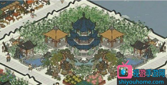 后方的竹林用1级的即可,泥巴地基由于前面的遮挡,看不出来。仔细一看,竹林花园和玲珑棋局前的石子路仿佛无缝衔接。