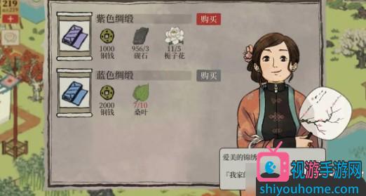 其中紫色绸缎需要1000个铜钱,3个砚石,5个栀子花才可以顺利得到。蓝色的绸缎则是需要2000个铜钱,然后还需要10个桑叶才可以顺利的兑换。