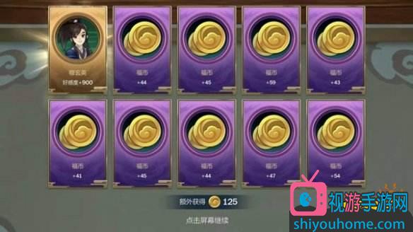 当前选择门派的好感度、当前选择门派侠客尚未获得的秘籍、每次寻访赠送10到15福币。