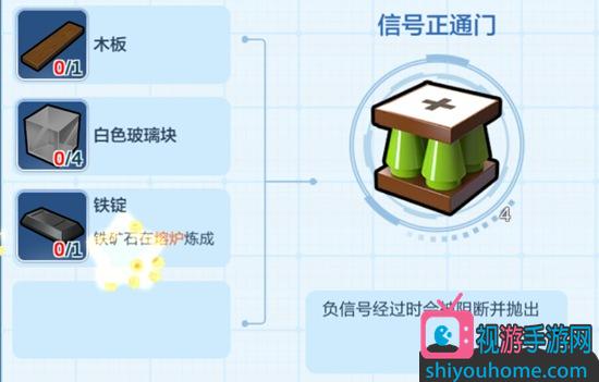 在工具台上消耗1个木板,4个白色玻璃块,1个铁锭进行合成。