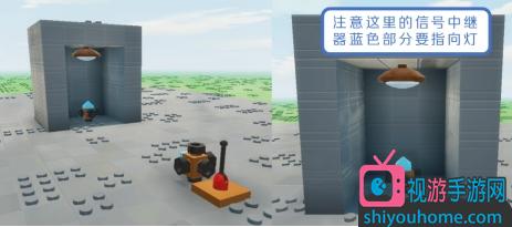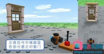 这时,我们可以使用“信号转向器”来实现信号的转向,我们来尝试放置4个信号转向器,并用精密仪器扳手把信号转向器调整至对应的方向,使得信号可以绕过墙壁发射向门。