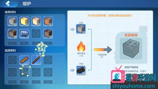 将石块放在熔炉里烧炼制作成玄武岩块。