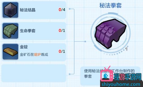 消耗4个秘法结晶,1个生命拳套,1个金锭。在工作台--装备进行合成