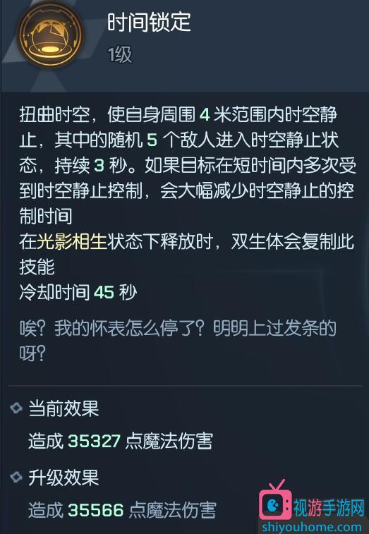 竞技场可将天鹅共舞替换为时间法则,降低时间锁定的冷却,使双生拥有更强的控制能力。但大家要记得在“时间膨胀”的状态下使用“时间锁定”,这样时间锁定才能得到降低冷却效果。双生时间锁定、魔女之吻的冷却较长,对战时要注意目标状态,不要在目标免控状态下使用以免浪费技能。