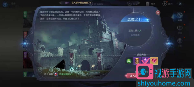 恶魔之门是勇士们的第一个正式副本,这里曾经是魔法师协会建造的训练场,是一个封闭的空间,曾经是用来考验年轻魔法师。随着联盟军的成立而公开,一旦进入这里的话,就必须要面对无数的恶魔幻象,非常考验勇士们的能力与勇气。