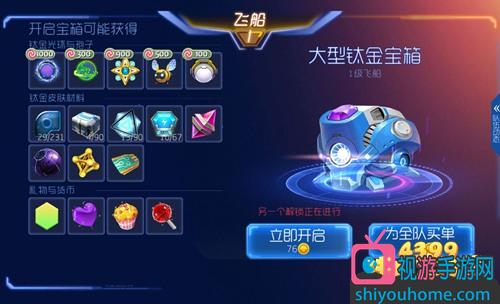 小型钛金宝箱、普通钛金宝箱、大型钛金宝箱、稀有钛金宝箱4种类型,级别越高解锁时间越长,获得的道具也越多。