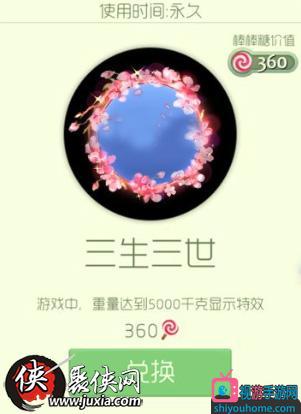三生三世为光环皮肤,价值360棒棒糖,可以通过花费360棒棒糖购买获得。