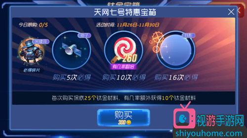 每次购买保底25个钛金材料,有几率为获得10个钛金材料。