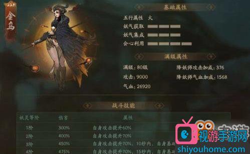 金乌是SSR中的输出大姐大,单体输出中最强的妖灵,这是大家都公认的,另外除了被水属性克制之外,对其他属性的伤害也是相当高的。而且想要是可以变身金乌,大幅度增加攻击。