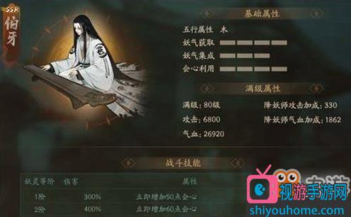 无支祁是一只非常帅气的水猴子,自然是水属性的,可以给自己和其他的妖灵增加攻击力,而且无支祁释放技能的时候动画很长,适合用来抵挡BOSS的狂暴,非常好用。 伯牙