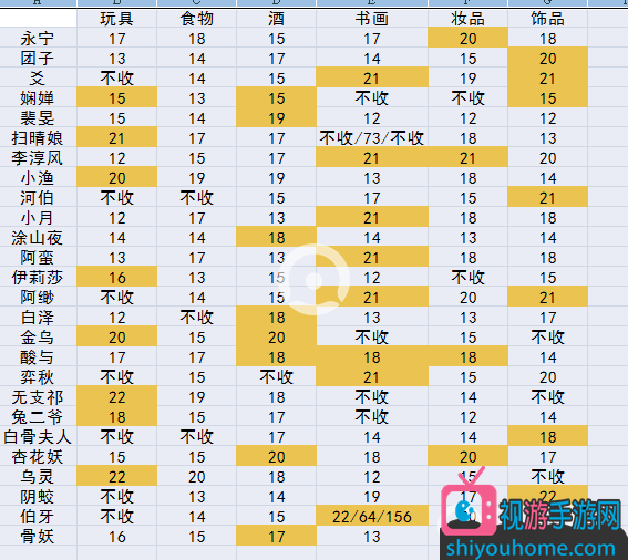 下面就是不同礼物得到的情义值的具体数值了,相差还是很大的,按照这张图送,可以节省很多时间拿奖励。