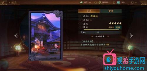 该妖灵在拓印上面选择了雷音寺,选择这张卡片主要就是为了让它加速妖气集满,可以更快的召唤使用它,而雷音寺恰恰是这方面最厉害的卡,如下图大家可以清晰的看到特效描述中加深的大量二字。