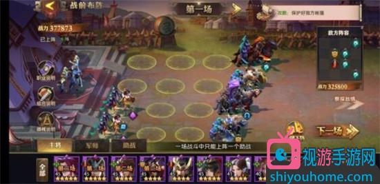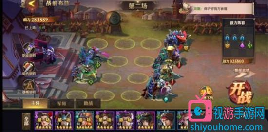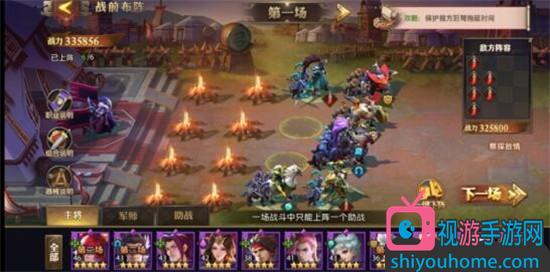 第三关敌方阵容比较单一,己方也不要选什么花里胡哨的。分配战力、上阵传统阵容即可,要注意的是面对敌方多轻骑阵容时,要保护好己方输出主将,保证双C安全,阵容才能够稳定。