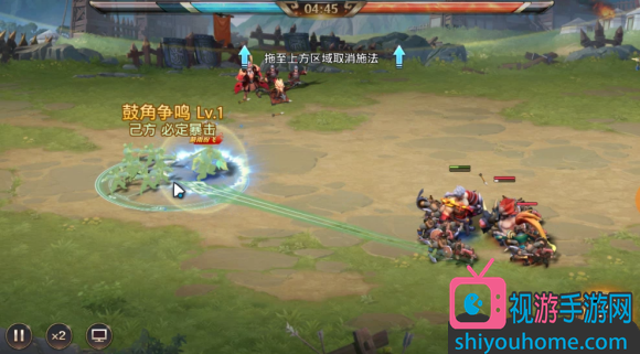 这一关有个小陷阱,给了2个布阵位,但上了后排就一定输,只上盾兵才能把2个骑兵聚起来,再使用军师技能秒杀。多次尝试后,我发现盾将在右上角,敌方会更聚集。