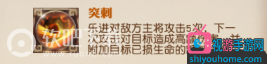 概述:乐进对敌方主将攻击5次,下一次攻击目标造成高额伤害,并且附加目标已损失生命的额外伤害