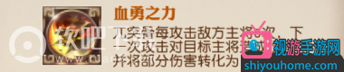 效果介绍:兀突骨每攻击敌方主将6次,下一次攻击对目标主将造成500%攻击的伤害并将伤害的50%转为自身[护盾]