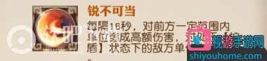 主将4级时效果:每隔16秒,对前方一定范围内单位造成253%攻击+830的伤害 ,对处于[护盾]状态下的敌方单位伤害提高50%