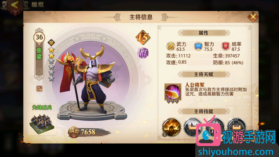 2、张梁:群雄盾兵主将,接战时附加增伤,召唤黄巾力士。