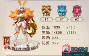 评价:黄月英的玉兔祈舞天赋技能在战场上可以为我方生命最低的部队恢复生命,相当于一个奶妈技能,回天之术也一样,其他技能军士针对敌方部队,使对方造成迟缓、降低防御、受到我方部队20%暴击的减益效果。