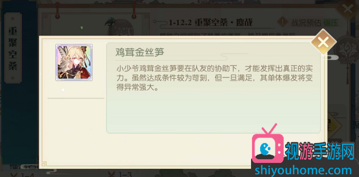 至于御品食魂也就是【鸡茸金丝笋】,很可惜在现阶段玩家是无法在1-12关卡里面获取的。之前在游戏内测的时候,1-12是能够掉落出鸡茸金丝笋的,但是公测之后改了,现在1-12最多掉落出珍品的东坡肉。很多玩家查鸡茸金丝笋的攻略查到1-12,原因也是因为查到了过去内测时候的攻略,然而少主时代已经不同了。