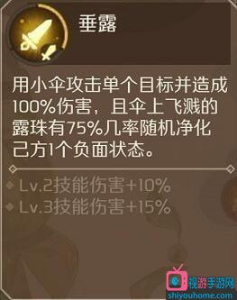 小伞就是她的武器,连伞尖上的露珠都可以为队友净化哦