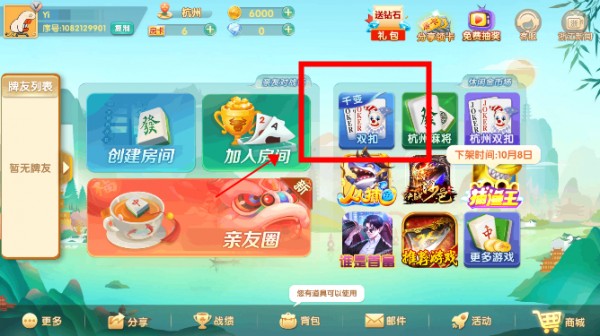 3、规则上千变双扣增加了癞子、贡献等多种玩法