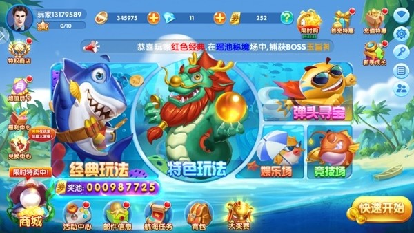 全民街机捕鱼安卓版中玩家可以感受到多样的捕鱼内容,与各种boss进行战斗,快速击杀他们获得奖励,游戏有多个不同的场次和模式可以选择,让您在海洋世界中尽情捕鱼证明自己的实力,超多福利放松,不花钱也能获得各种精美