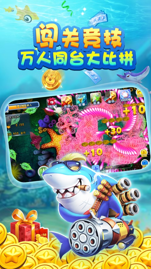 精美绚丽的捕鱼场景,酷炫洋气的全新炮台,让你体验最刺激的捕鱼体验