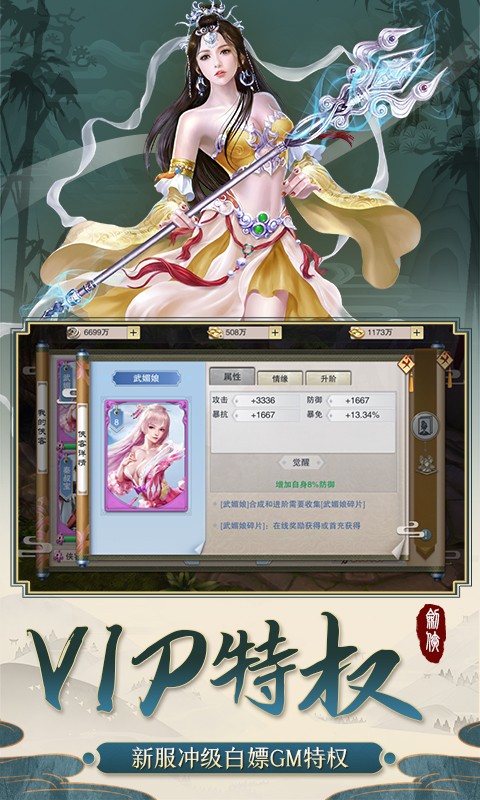 ★上线赠送vip7,绑定元宝50000、铜币500万,筋斗云*520
