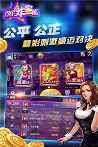 2、花开棋牌官方版手机版融合了多款热门的扑克玩法,平台内有超多的高手,随你挑战