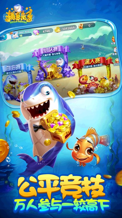捕鱼来了手游还原经典捕鱼玩法,倍率、比赛、组队,多种休闲社交玩法满足同屏爆金体验!创新剧情闯关玩法,升级养成、一战到底,分数比拼乐趣足!