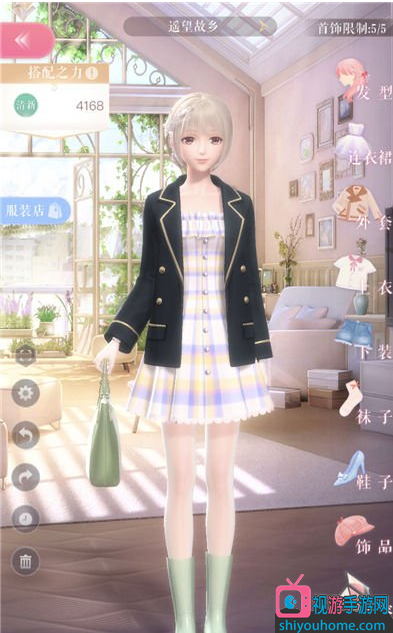 头发:香草的短发,连衣裙:鸢尾的私语,外套:完美程序,袜子:小透明,鞋子:初夏海滩,头饰:栀子花语, 耳饰:精灵之泪,手饰:金丝蝶缠,手持物:清新托特包,手套:花蔓。
