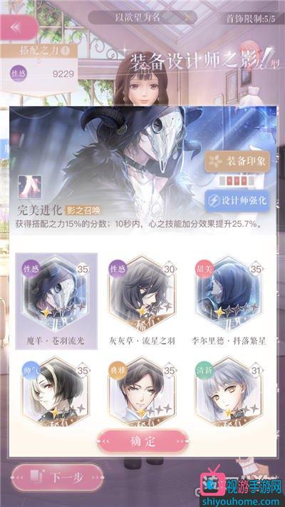 设计师之影用的是幻之海抽取的魔羊·苍羽流光。过了这一关就可以制作性感属性非凡套装夜来香之吻,还可以获得性感属性非凡设计师之影莉莉丝·夜来香之吻。