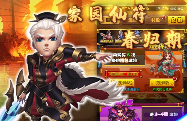 各具特色的三国名将,丰富多样的武将技能,兵种、阵形、乘骑、法宝,传奇武将觉醒转生,打造你的三国传奇武将。