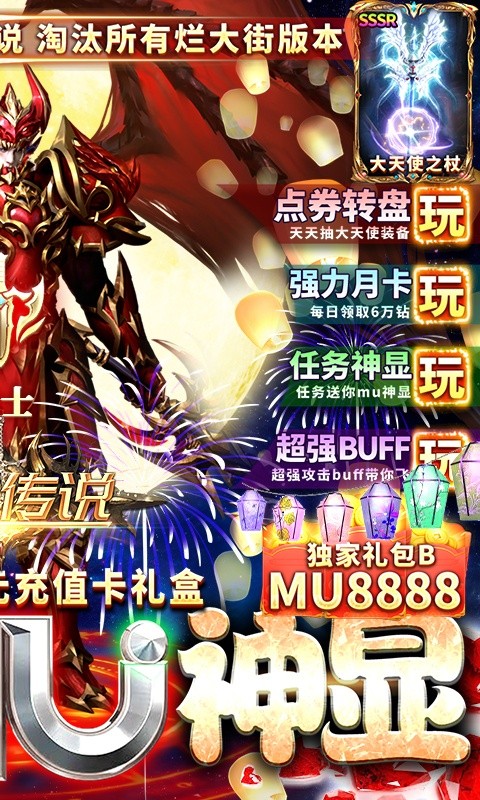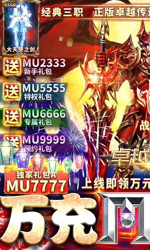 《卓越传说万充MU神显版》还原经典剑与魔法的绚丽世界!战法弓三大职业任君选择,快化身救世勇者,书写你的传说!华丽翅膀、炫酷神魔、强力佣兵在线即得! 玩法简单易上手,福利满满享不停! 在线PK刷Boss,离线照样能升级! 多种跨服玩法,自我突破永无止境! 三大职业风格迥异,技能炫酷秀翻全场!