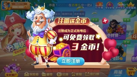 2、每日领海量金蔽,免费玩欢乐游戏,万人在线高手云集,真人联网比拼牌技;
