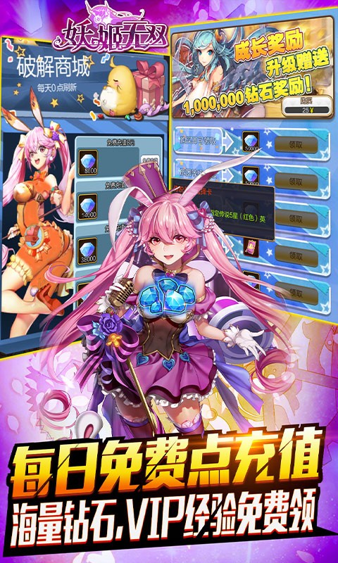 《妖姬无双充值免费点版》是一款二次元竖版挂机手游,美术画风无比精细,操作简单,挂机方便,不肝不氪。英雄组合多变,配合作战,协同冒险,快来一起体验闯关吧。该版本为BT福利版,独家免费充值系统,在线即可免费领取真实充值,等同于真充。