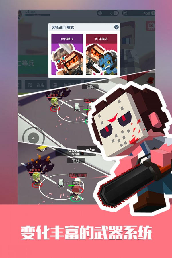 城市大乱斗是一款俯视角度45度、3D像素风格真实对战io射击手机游戏。在游戏中,玩家将通过控制移动和射击的方向来比拼各自的竞争技能。同时,简单干净的艺术风格、多样的武器系统和有趣的地图场景,将带给玩家无忧无虑的战斗体验。高清像素画风,小巧精致人物,搭配动感的背景音乐,营造一个诙谐轻松的游戏氛围。玩家在游戏中只需要控制摇杆,准确射击即可,简单有趣的操作,好玩刺激的关卡,让玩家爱不释手。同时还有海量炫酷主题皮肤,等待你来领取,在这里,收获更多的惊喜。游戏收录了非常丰富的道具,每种道具都有独特的玩法和技能,丰富的武器结构使整个对局变得更加刺激,简单便捷的操作模式和精致细腻的UI设计,让你在城市大乱斗中享受到最纯粹的喜悦。与对手展开激烈的战斗,实力说活,制霸赛场,秀出自己的风采!游戏支持多人在线同屏竞技,与全服玩家线上实时对战,感受IO竞技游戏的魅力!更有精彩副本任务,精彩无极限!每局游戏只需一分钟,不管是上班族还是学生党都可以随时随地开始游戏,想玩就玩,是你碎片时光里休闲娱乐的不二之选。视游手游网带来城市大乱斗最新手机版游戏安卓手游免费下载安装!喜欢就来下载吧!