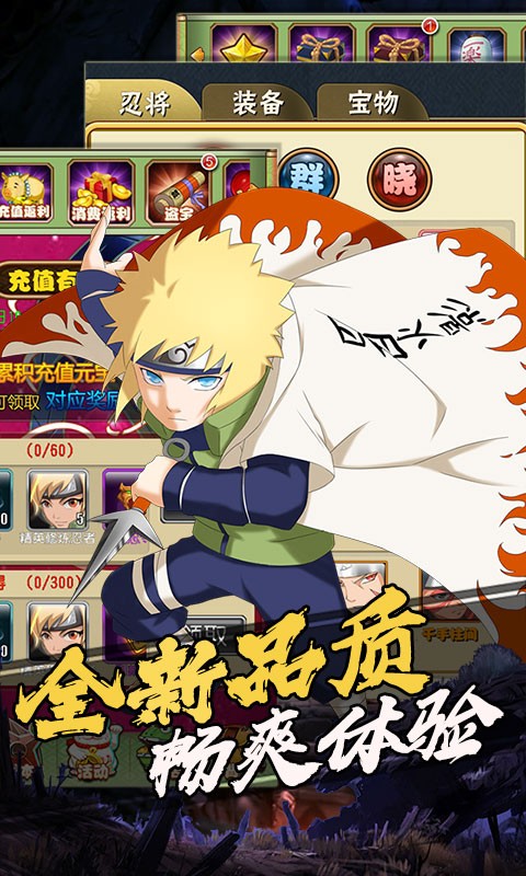 忍者跳跳总动员商城版是一款最新上线的以《火影忍者》为主题打造的二次元手游,游戏中你将体验超刺激的火影忍者战斗玩法!