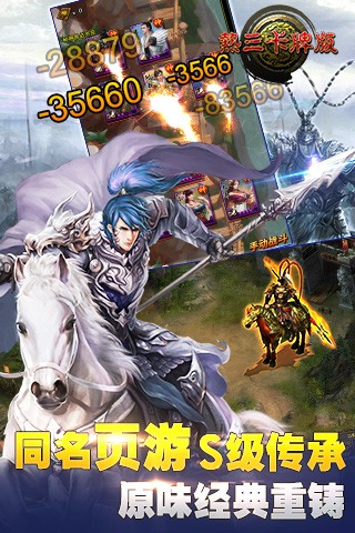 《热三卡牌版》是一款由芜湖乐时游戏公司潜心研发的,以《热血三国》为主要题材的卡牌游戏,在这款游戏中,你将来到一个三国群雄争霸的世界,成为一名初出茅庐的勇者,与诸多脍炙人口的三国武将相遇,不断成长,直至称霸天下!三分天下选择阵营,在进入游戏时选择不同的国家,系统就会提供相应的种子武将,为你的发展提供基石,比如在选择魏国开始后,在新手指导阶段将获得种子神将曹操、夏侯惇、夏侯渊等知名三国角色!极致画面唯美呈现,在游戏中每一张卡牌都由知名画师亲力打造,五百多张的英雄卡牌供你选择,超高名将爆率,自主养成绝不坑爹,还有绚丽的武将技能带给你超凡的享受,再搭配极致的光影效果,为你打造一副美轮美奂的三国战场!策略性的游戏玩法,这款游戏传统策略页游和现代休闲手游完美结合,除了需要将一大批能人异士入其麾下,还要合理使用他们的能力,组建最合适的出战阵容,让你的将士在战场上更加势如破竹!还有独创组合技,与你的战友一同作战,将劲敌们一网打尽! 更有首创神兽系统,霸气外漏的究极必杀技,一曲唱尽万骨枯!快来视游手游网下载这款游戏,摸索属于自己的打法吧!