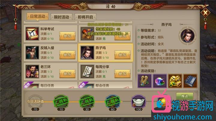 燕子坞副本详解每位少侠在到达32级后,就可以组队参加燕子坞任务了。少侠们可以选择由自己组建队伍,最终获得队长礼包。也可以选择在组队平台上加入其它队伍,不过加入其它队伍可就没有队长礼包。当然奖励多多的燕子坞可是有进入次数限制的,每位少侠每天只可进入燕子坞两次,进入次数会在每天的0点进行刷新。