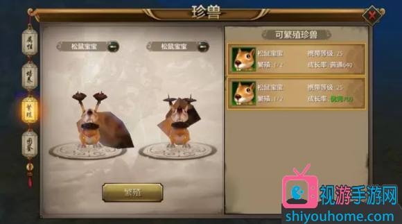 繁殖宝宝之前需要拥有两只同类型的宝宝,也就是外形长的一模一样的宝宝。在拥有两只同类型的珍兽宝宝之后,就可以在宠物的繁殖页面来选择繁殖宝宝。繁殖出的二代珍兽宝宝会随机获得1-9星级。
