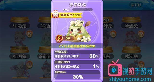 茉莉茶兔的登场效果为冲刺状态得分增加60%,这里考虑到了大量局内道具的影响,所以长距离爆分选择茉莉茶兔会更好一些,这里玩家根据自己所进行的对局来自行选择精灵即可。